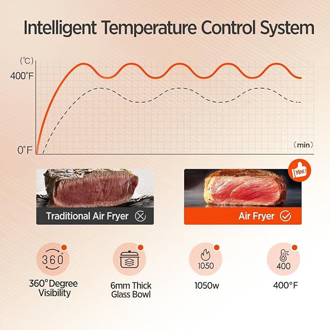 4.5QT Air Fry,Glass Air Fryer,6-IN-1 Air Fryer with Viewing Glass Pot,Roast, Reheat, Dehydrate, Air Crisp Technology,Nonstick & Dishwasher Safe Basket,97% Less Oil,Features Digital Timer -