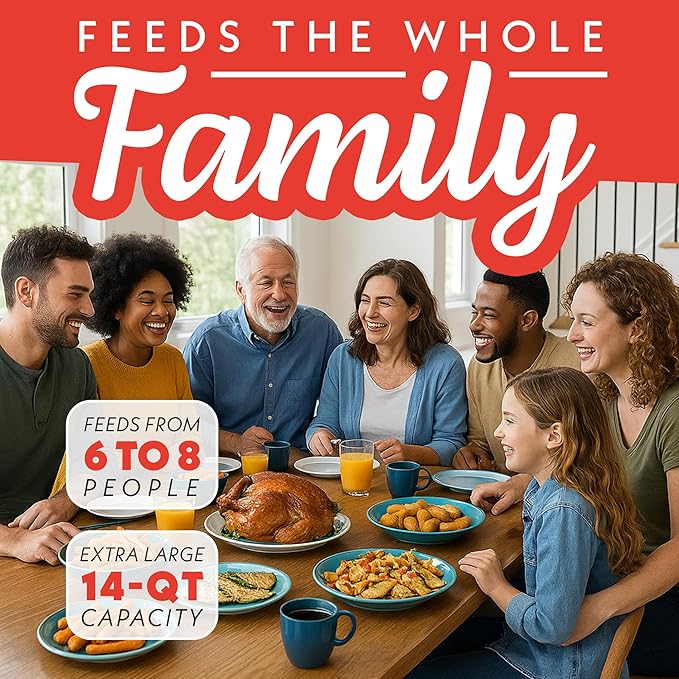 Gourmia Air Fryer Toaster Oven Combo - All-in-One 14-Quart Digital Air Fryer Toaster Oven with Rotisserie & Dehydrator – 12 Presets, Guided Cooking Prompts, 1750W, Dishwasher-Safe Accessories -