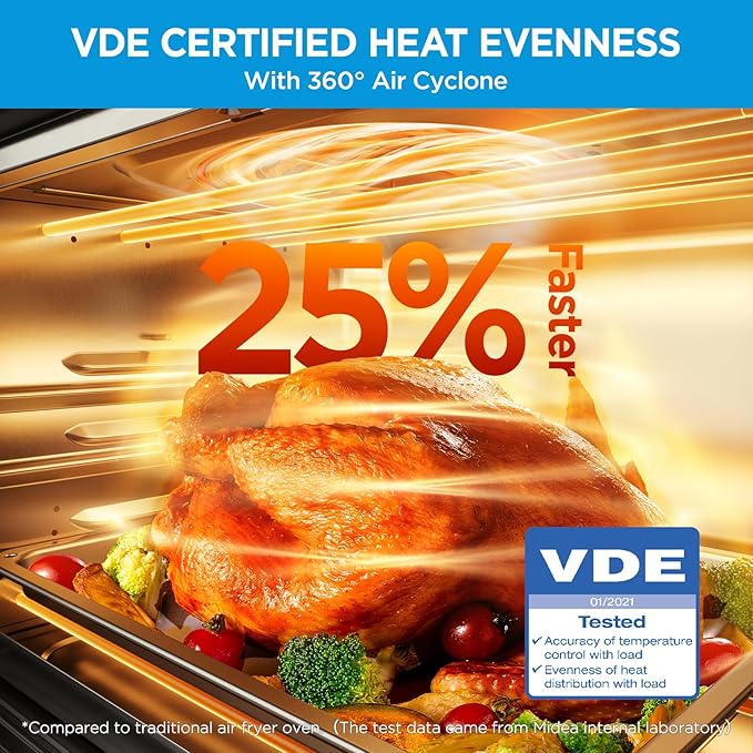 Midea Flexify French Door Toaster Oven Air Fryer Combo, 26.4 QT, Extra Large Air Fryer Countertop Oven 10-in-1 Combo, 25% Faster Cooking and 90% Less Oil, Stainless Steel -