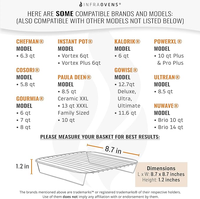 Air Fryer Rack Accessories Compatible with Ninja Crispi, Bella, Cosori, Secura, Insignia, Philips, Kalorik + More, Stainless Steel Extra Large XL Silicone Mat, Accessorios para Freidora de Aire -