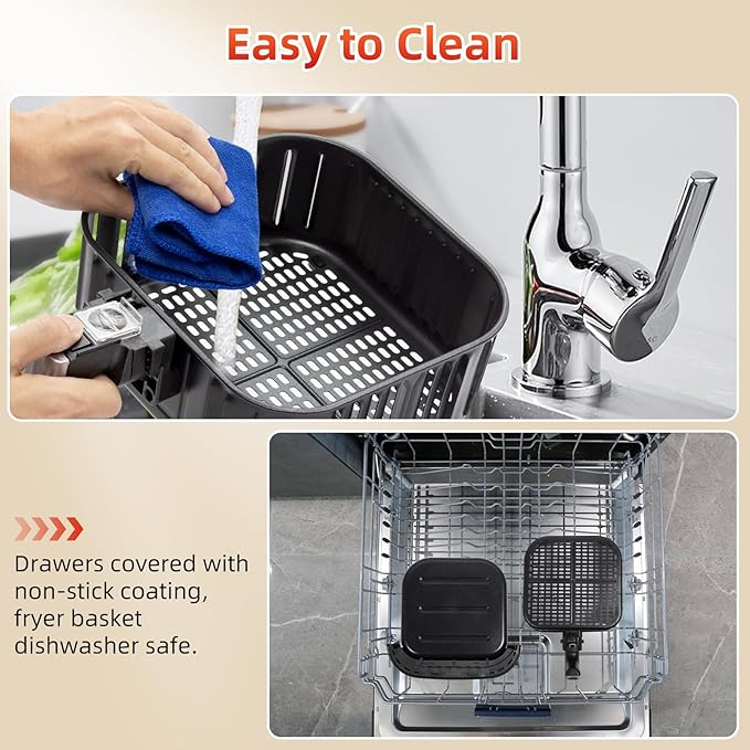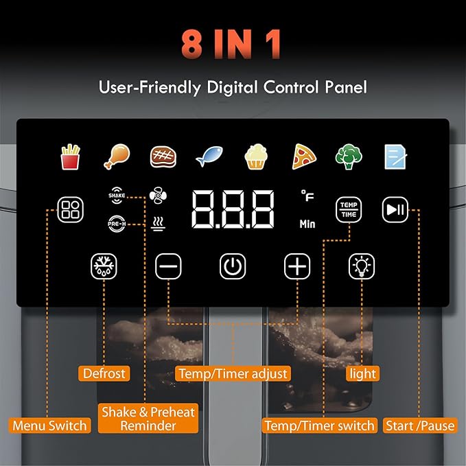 Air Fryer 8 in 1, XL 8.5 QT Large Airfryer with View Windows,MAX 450℉ for Crispy, 85% Less Oil, Fast Roast, Preheat, Shake, Bake, Non-Stick Basket for Easy Clean, With Professional Recipes -