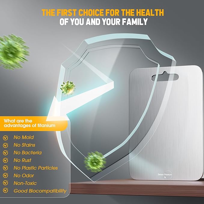 100% Pure Titanium Cutting Board - Double Sided Titanium Cutting Boards For Kitchen - Dishwasher Safe Large Cutting Board for Cutting Meats, Fruits, Vegetables -
