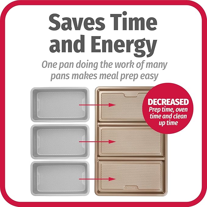 GoodCook 11” x 17” Non-Stick Divided Sheet Pan – 3-in-1 Textured Cooking Pan, Baking Dish, Scratch-Resistant Carbon Steel Oven Pan for Meal Prepping & Sheet Pan Dinners -