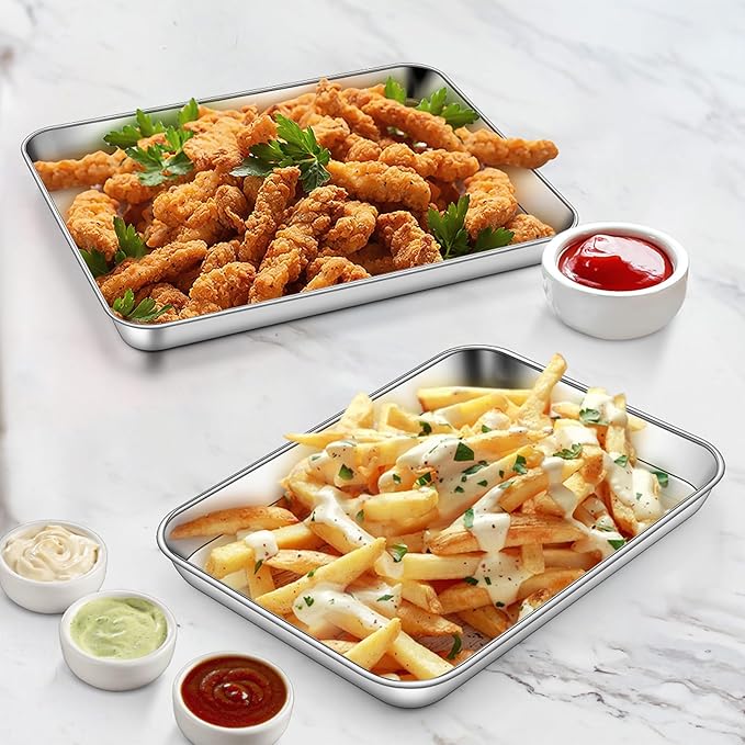 Homikit 2 Pack Baking Sheet, 10 x 8 Inch Stainless Steel Cookie Tray Set for Cooking Toasting, Small Metal Toaster Oven Baking Pan Non Stick, Rustproof & Mirror Finish, Dishwasher Safe -