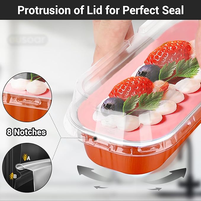 EUSOAR Mini Loaf Pans with Lids, 50pcs 6.8oz Aluminum Foil Cupcake Cups Dessert Liners with Lids, Rectangle Muffin Wrappers Creme Brulee Hoder Cheesecake Containers for Birthday Wedding Party -
