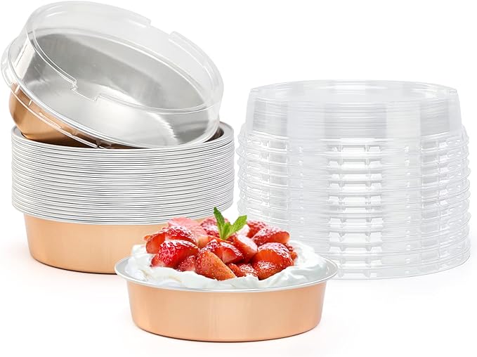 EUSOAR Baking Cups with Lids, 50pcs 6.8oz Aluminum Foil Cheesecake Ramekins Mini Loaf Pans Tin Disposable, Reusable Cake Containers Wrappers Cheesecake Creme Brulee for Picnic Wedding Party Gathering -