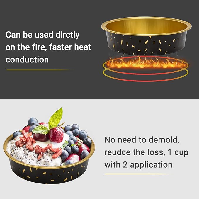 Beasea Pie Tins with Lids 8oz, 120 Pack 4 Inch Disposable Mini Creme Brulee Ramekins Gold Black Small Aluminum Foil Pie Tart Cake Baking Pans Individual Round Containers Oven Safe for Baking -