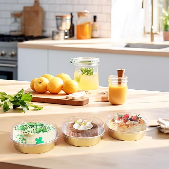 Beasea Mini Pie Tins with Lids, 120 Pack 4 Inch 8oz Disposable Creme Brulee Ramekins Golden Mini Small Aluminum Foil Pie Tart Cake Baking Pans Individual Round Containers Oven Safe for Baking