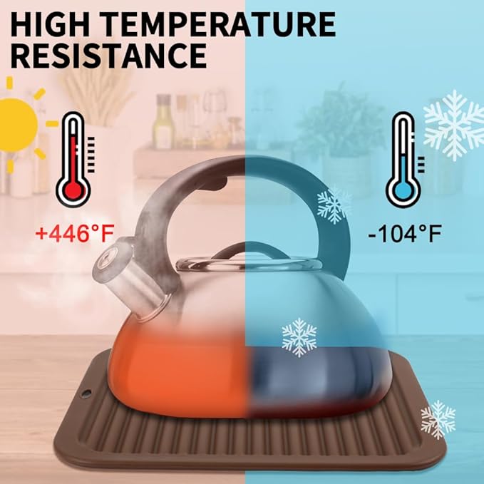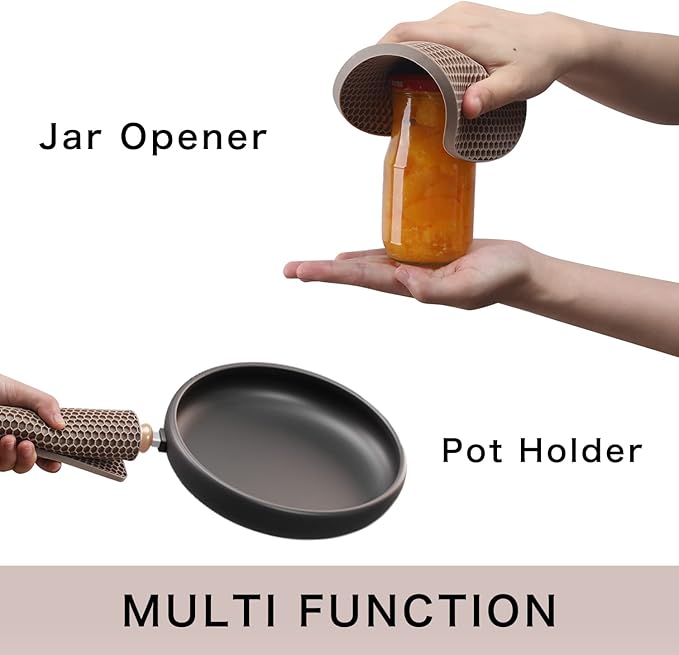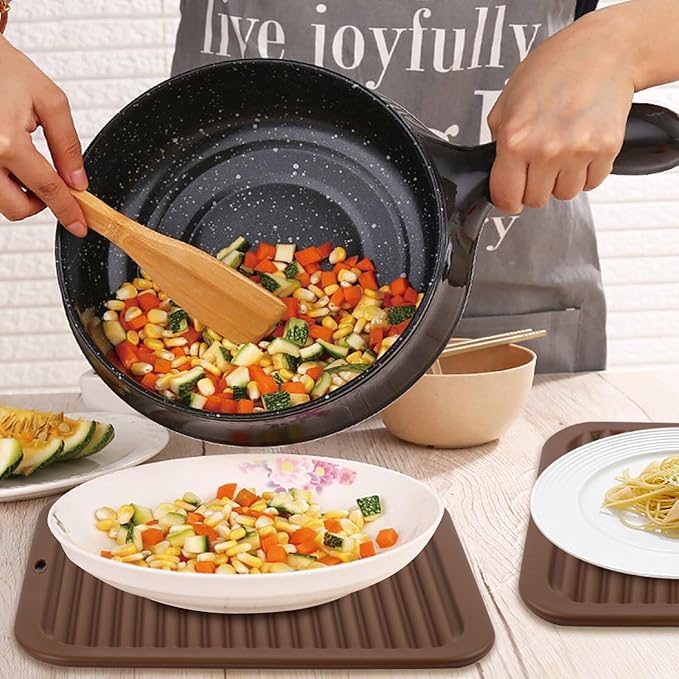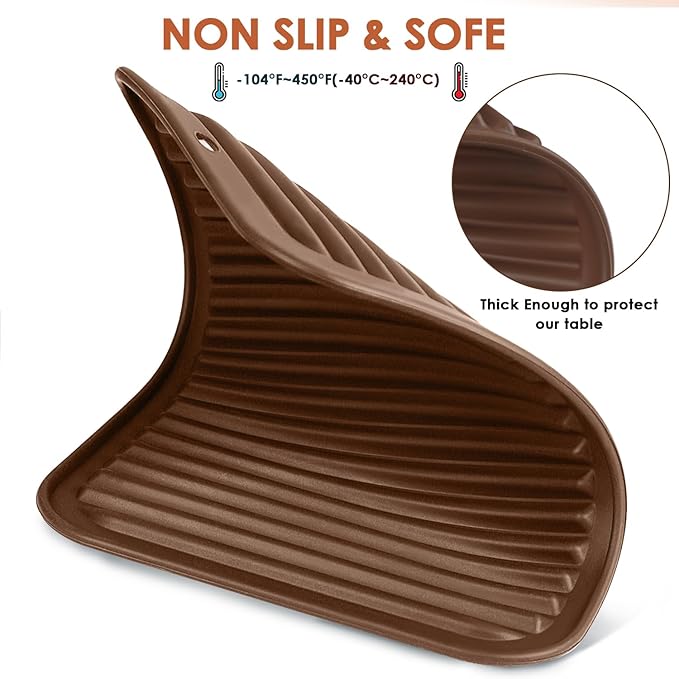 4 Pack Silicone Trivets for Hot Dishes Large 446°F Heat Resistant Pot Holder Hot Pads for Kitchen 9'' x 12' Brown Silicone Trivet Mat for Hot Pots and Pans, Jar Opener, Drying Mat -