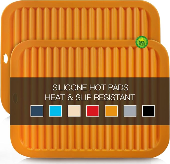 Silicone Trivets for Hot Pots and Pans, 9 * 12" Orange Silicone Hot Pads Pot Holders for Kitchen, 2 Pack Trivet Mat for Hot Dishes, Hot Pot Mats Hot Plates for Table Hot Dishes, Jar Opener -