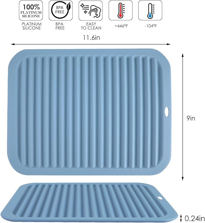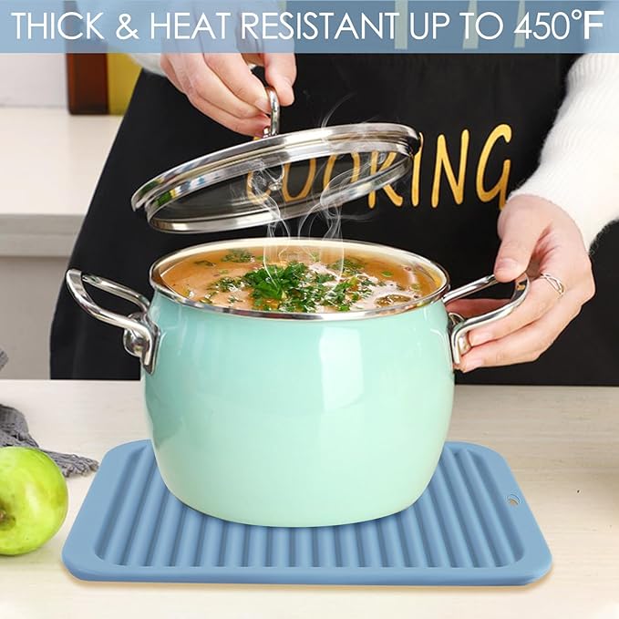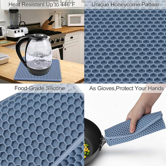 Large Silicone Trivet for Hot Dishes, 4PCS Hot Pads Trivets Mats for Hot Pots and Pans, Heat Resistant Silicone Hot Pot Holders, Blue Tables Mat for Countertop, Jar Opener, Drying Mat -