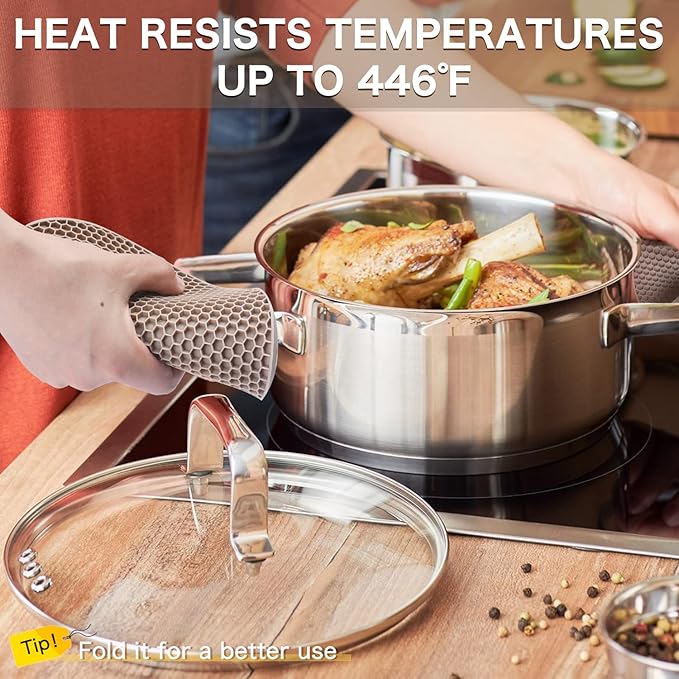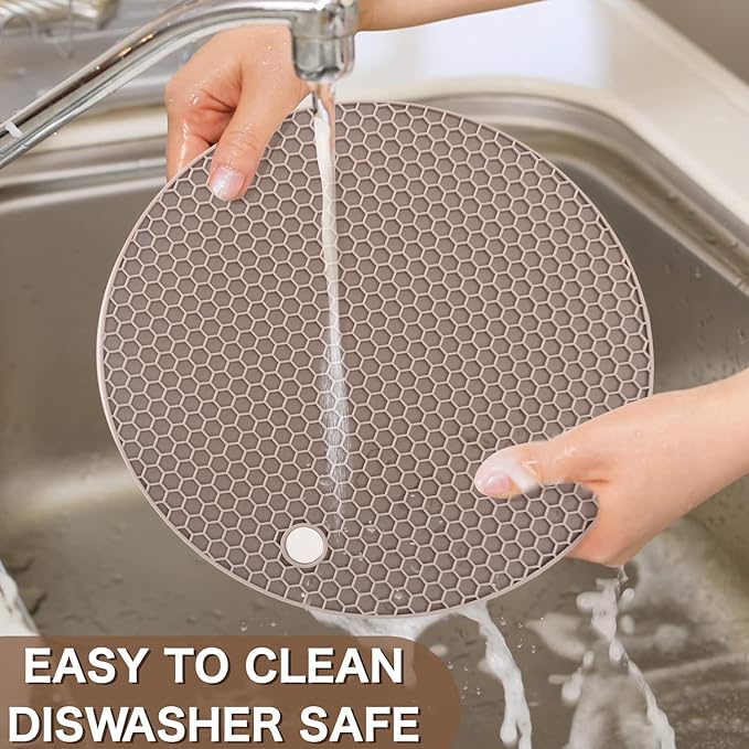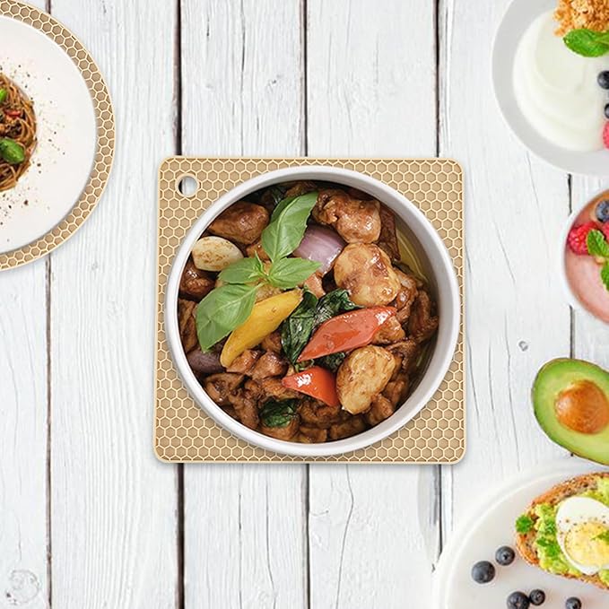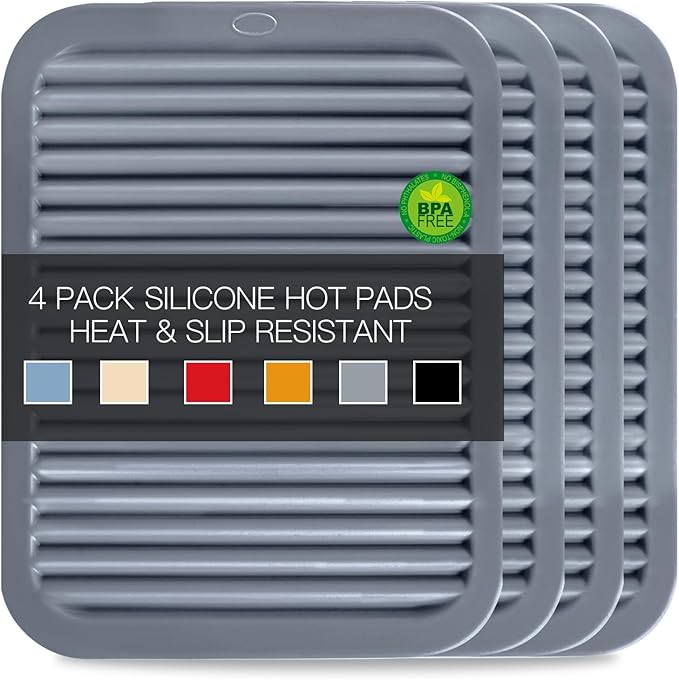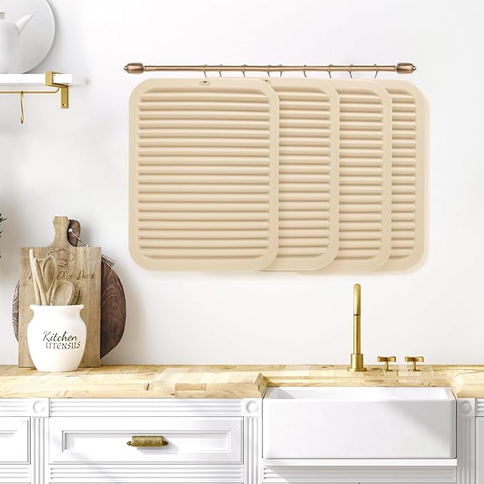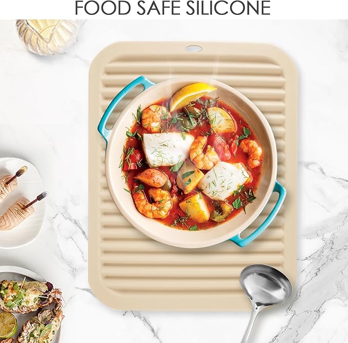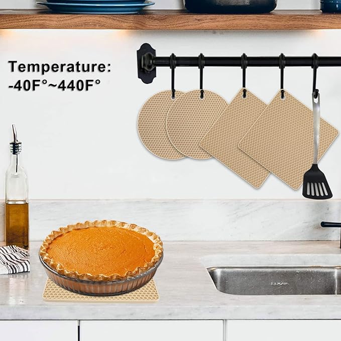 QPIX DIGITAL 4 Pack Silicone Trivets for Hot Dishes, Large & Heat Resistant Silicone Pot Holder Hot Pads for Kitchen, 9x12 Beige Silicone Trivet Mat for Hot Pots and Pans, Jar Opener, Drying Mat -