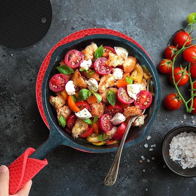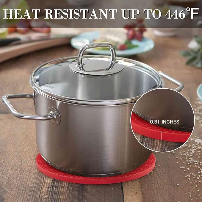 Silicone Trivets for Hot Pots and Pans - 4PCS Heat Resistant Oversized Silicone Pot Holders Hot Pads for Kitchen, Multipurpose Round Trivet Mat, Spoon Holder & Jar Opener, Drying Mat(Red) -