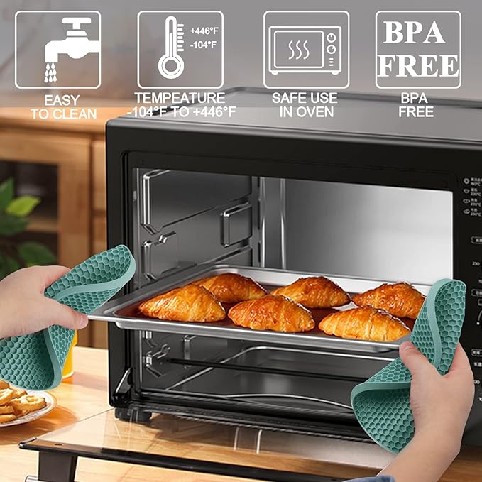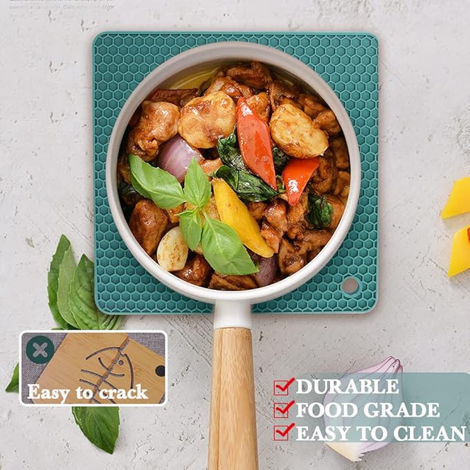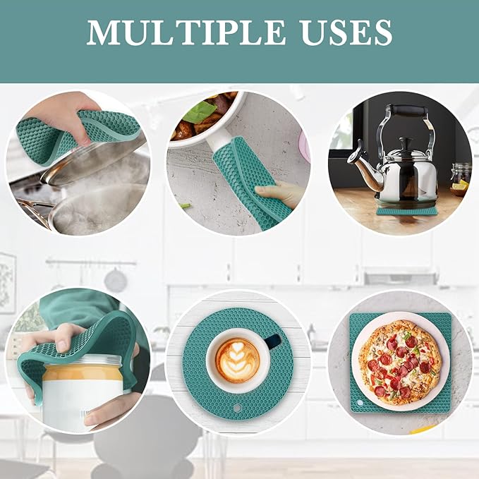 4 Pack Silicone Trivets for Hot Dishes, Dark Green Silicone Hot Pads Trivet for Hot Pots and Pans, 4 PCS Heat Resistant Silicone Mats Pot Holders for Kitchen Counter, Large Coasters & Jar Opener -