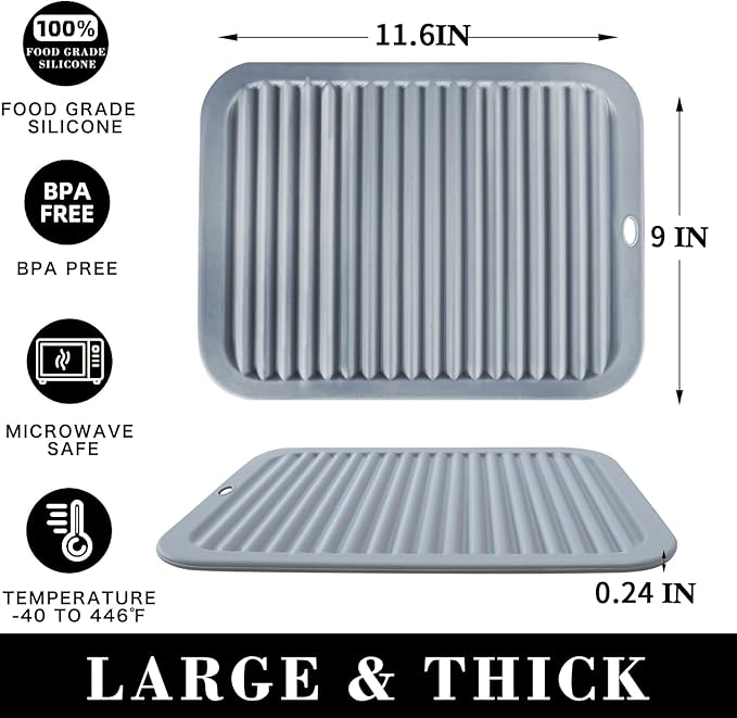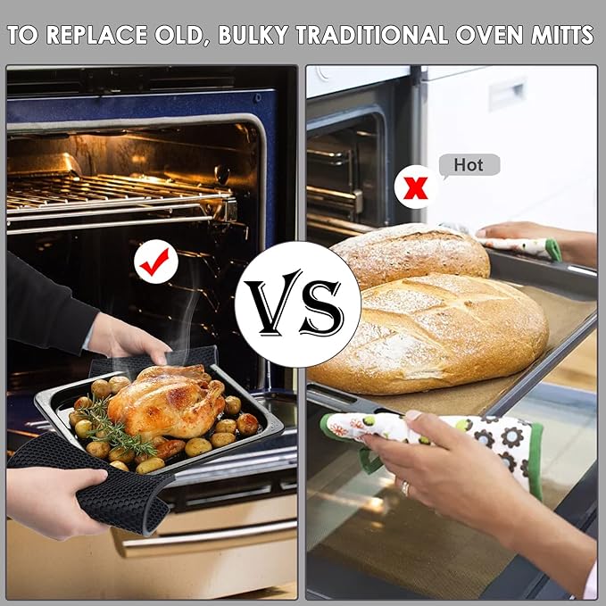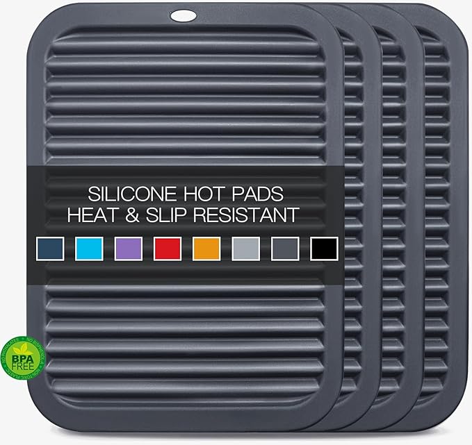 4 Pack Silicone Trivets for Hot Pots and Pans, Pot Holders Hot Pads, Non-Slip & Heat Resistant Silicone Mats for Kitchen Counter, Soft Durable Drying Mat, Jar Opener and Coasters (2 Black+2 Dark Grey) -