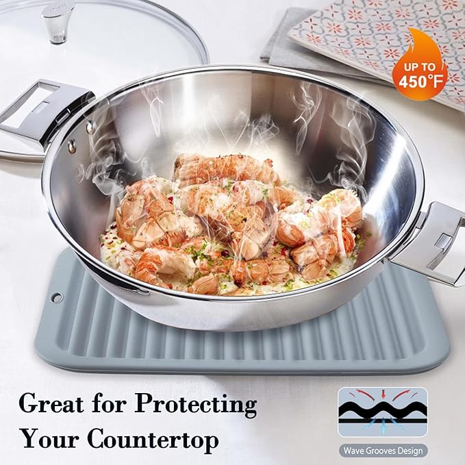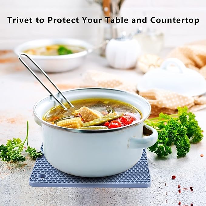 4 PCS Silicone Trivet for Hot Dishes, Hot Pads Trivets Mat for Hot Pots and Pans, Heat Resistant Silicone Hot-Mats, Pot Holders Jar Opener Tables-Mats for Countertop Drying Mat (Grey) -