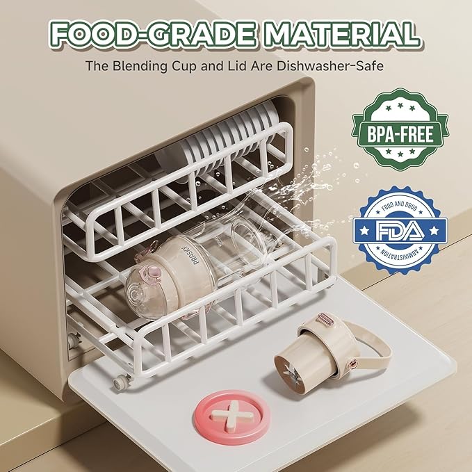 Portable Blender, Prasky Personal Blenders for Shakes and Smoothies with 27oz Cup, Lid and Shoulder Strap,Type-C USB Rechargeable, Personal Size Blenders BPA-free for Gym/Travel/Kitchen (Ivory White) -