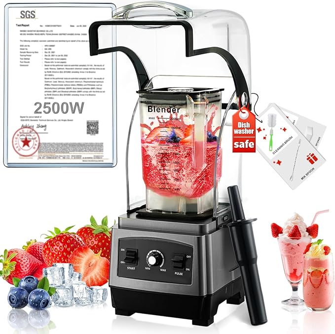 2025 Upgrade Commercial Blender | SGS German Super Motor 2500W| Dishwasher Safe | 6-Piece Japanese Blades, 3-Second Quick Ice Crushing | Quiet Blender for Juices and Smoothies, New -