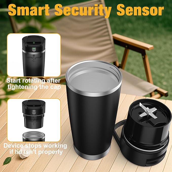 Portable Personal Blender with 12 Stainless Steel Blades – USB Rechargeable for Smoothie Shakes,14 Oz/420ML Cup and Extra Handle Lid, for Travel Sports Gym (Black) -