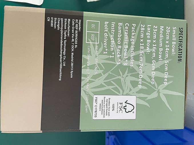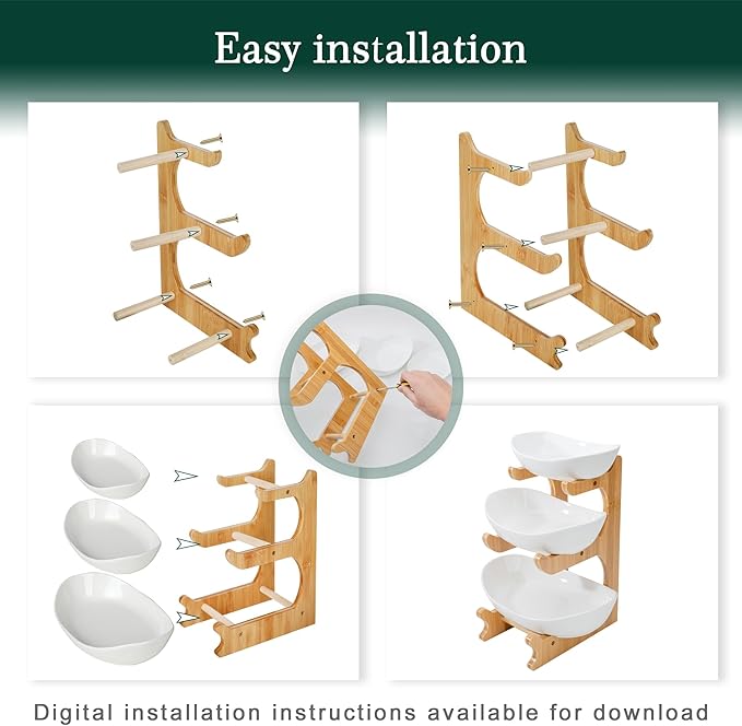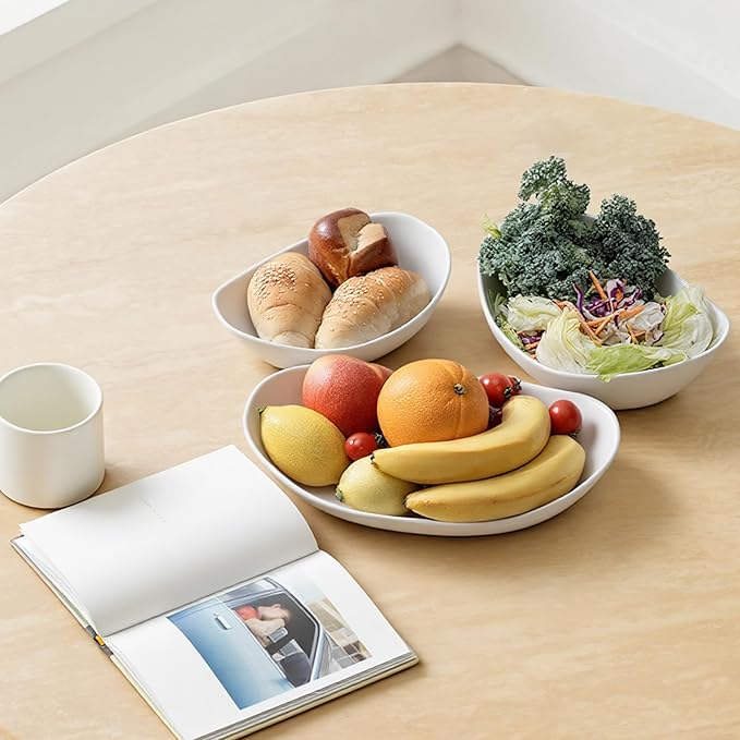SEVEN SPARTA Fruit Bowl for Kitchen Counter - 3 Tier Ceramic Serving Bowls with Bamboo Stand, Tiered Fruit Basket for Fruit Vegetable Storage, Cake, Dessert, Nuts, Snack, Salad (Dishwasher safe) -