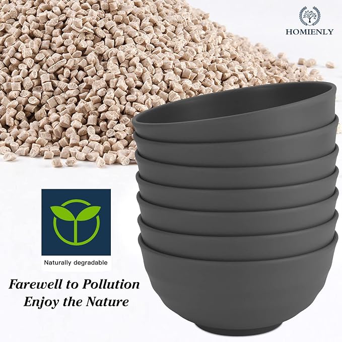 Homienly Wheat Straw Bowl Set, 60 OZ Unbreakable Lightweight Salad Bowls Set of 8, Bowls for Serving, Soup, Cereal, Dinner, Ramen, Microwave and Dishwasher Big Bowl for Kitchen, Camping(Grey, 60 OZ) -