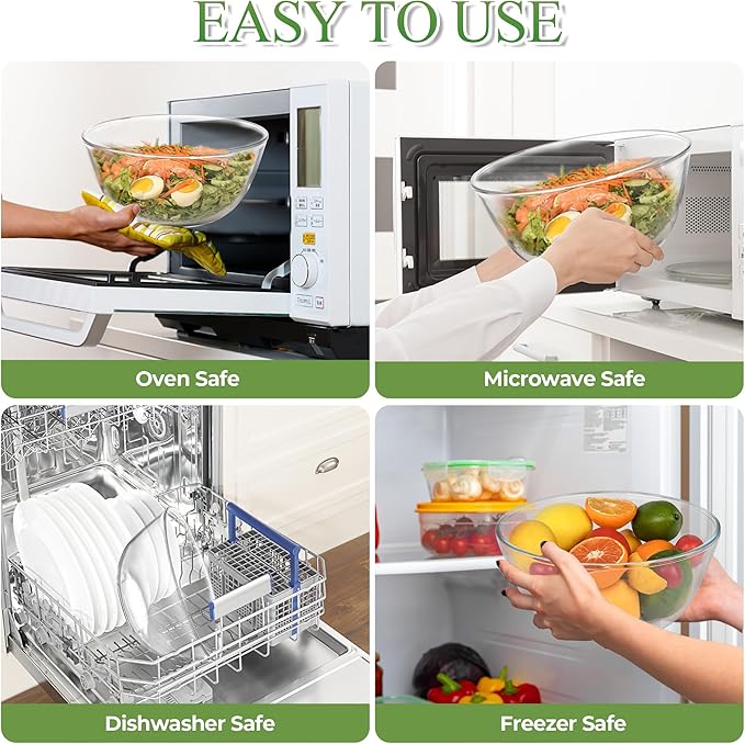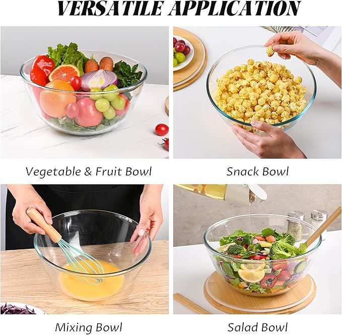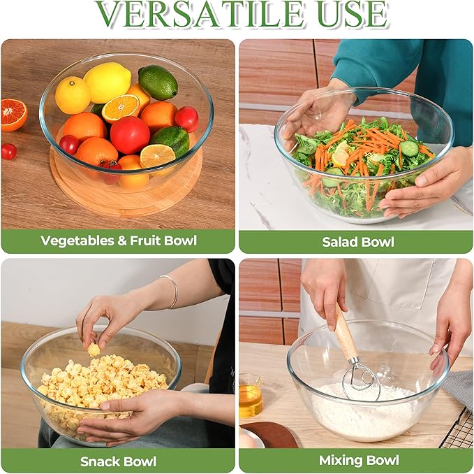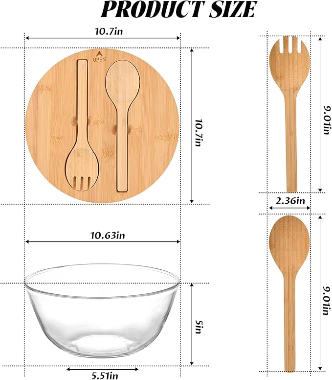 10.6" Glass Salad Bowl with Sealed Lid, 4.7 Quart Large Capacity Serving and Mixing Bowls with Utensils, Versatile Serving Dish for Salads, Trifle, Fruits, Pasta, Microwave Safe -