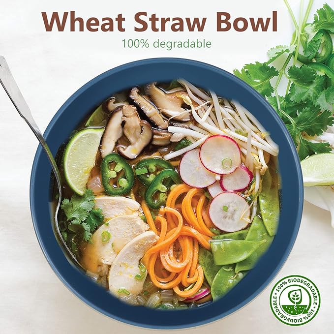 Homienly Bowls for Kitchen, Premium Wheat Straw Bowl 6 PCS, Unbreakable LIghtweight Salad Bowl with Texture, Alternative to Plastic Bowls Reusable, Microwave and Dishwasher Safe, Freezer Safe- Blue -
