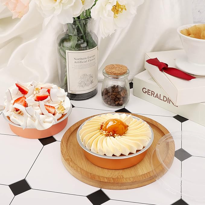 Beasea Aluminum Cupcake Pans With Lids, 4 Inch 100 Pack Disposable Pie Pans For Cake, 8 Oz Aluminum Pie Pan Tin Black Golden Tart Pans Round Oven Baking Mini Cake Pan For Pie Tart Quiche -