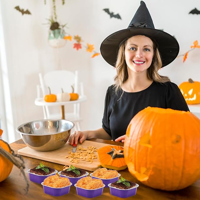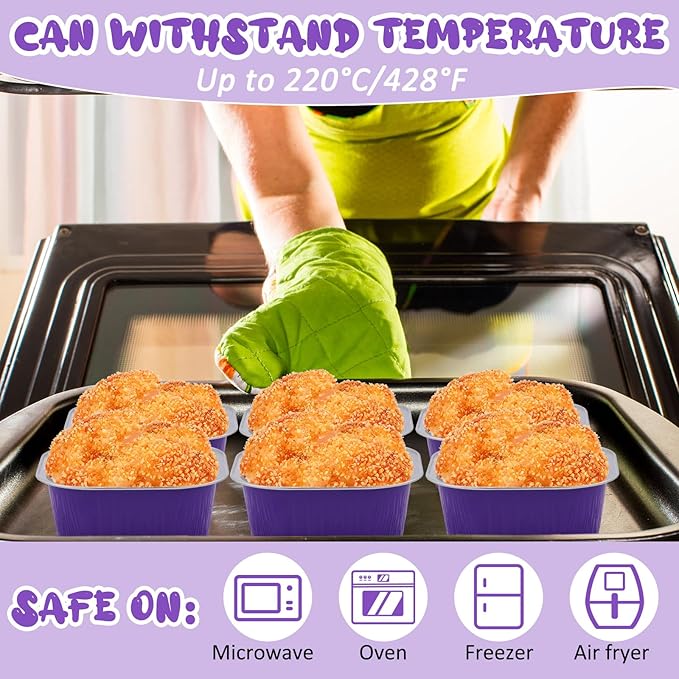 Aoriher 150 Pieces 10 oz Mini Cake Pans with Lids Aluminum Foil Baking Cups Square Disposable 4" x 4" Large Cupcake Cups Baking Tins for Kitchen Brownie Pudding Desserts Holders(Purple) -