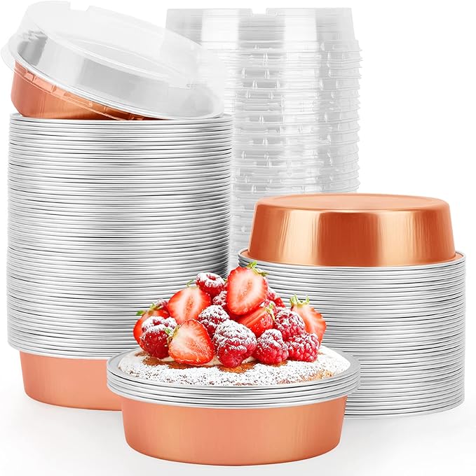 Beasea Mini Tart Pans, 8 Oz, 100 Pack, Rose Gold Aluminum Pie Pan Cartoon Tin Tart Pans, Round Oven Baking, 4 Inch -