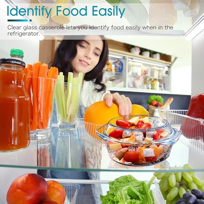 Glass Casserole Dish With Lid, Mini-1 QT (5.7in x 7in) Glass Baking Dishes for Oven, Single Serving Glass Oven Bakeware -