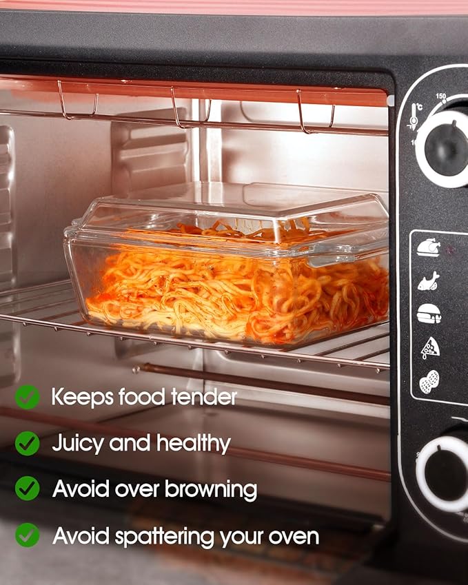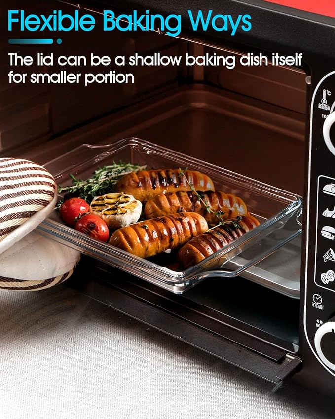 NUTRIUPS Rectangular Glass Casserole Dish With Lid Glass Bakeware Microwave Casserole Dish Lidded Oven Cookware (1.5L) -