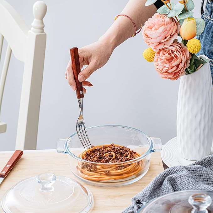 Mini-9 inch (60 OZ) Round Glass Casserole Dish With Lid, Round Oven Safe Glass Bakeware with Handles (1.9 QT) -