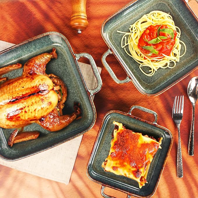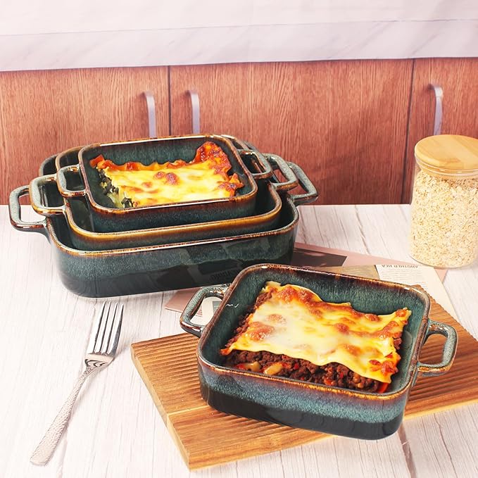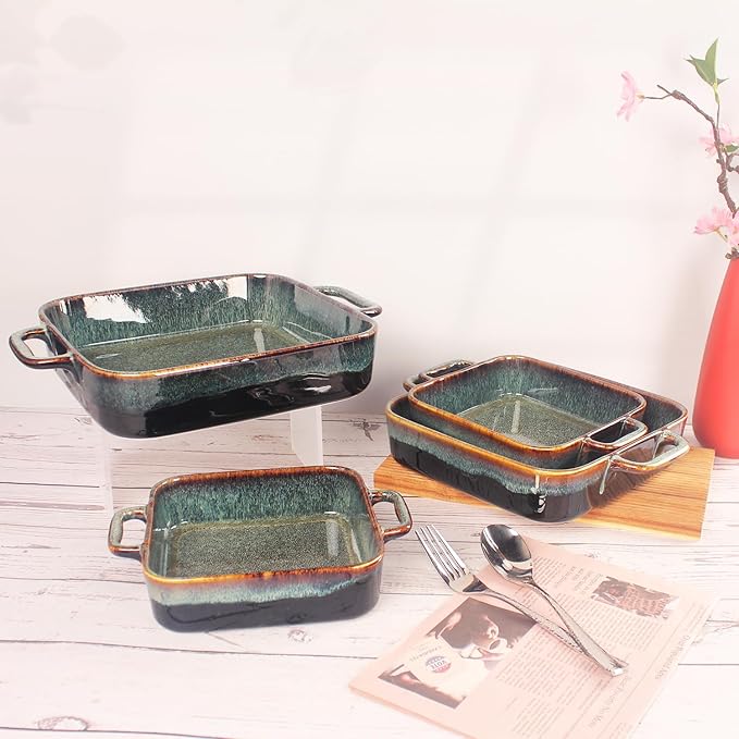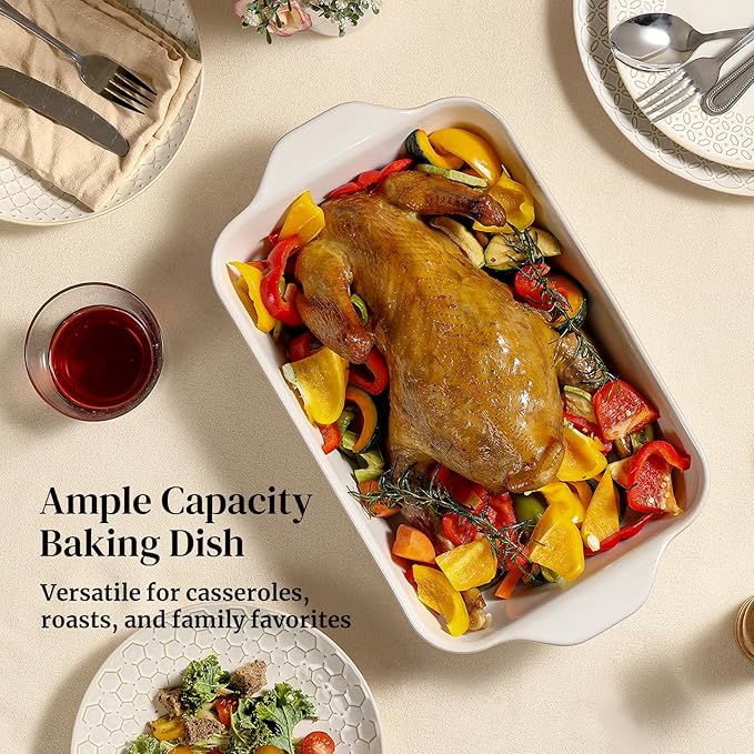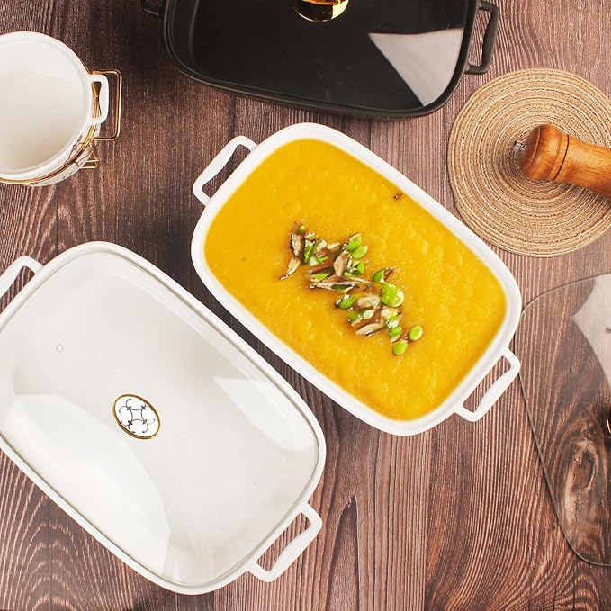 10" x 7" Casserole Dish 1.7 Quart Ceramic Bakeware Set with Lids, Chip and Crack Resistant Ceramic Casserole Dish with Handle 11.6 In, Microwave, Dishwasher, Oven, Freezer and Fridge Safe -