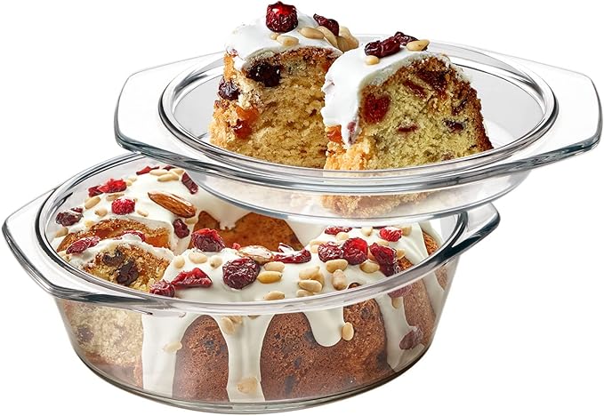 Maxcheck 2 Pieces Glass Casserole Dish with Lid Baking Casserole Dish Covered Cookware Microwave Bowls with Handle for Kitchen Restaurant Home Party Cooking, Oven Safe (Round,0.8L/ 1.7L) -
