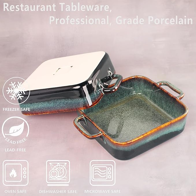 9" x 9" Porcelain Square Casserole Dishes - Baking Dish for Oven, 1.8 QT Ceramic Lasagna Pans, Oven Safe Bakeware for Kitchen Cooking, Cake, Banquet and Dinner -