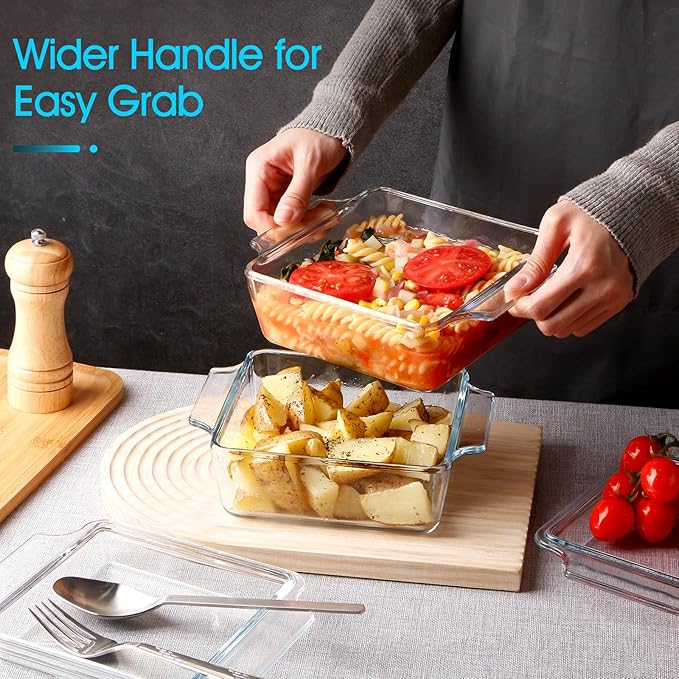 Set of 2 Glass Casserole Dish With Glass Lid, Square 6in x 6in Glass Baking Dish Oven Safe, Mini Casserole Dish with Lid -