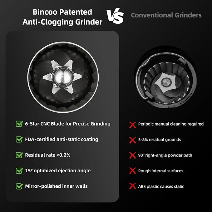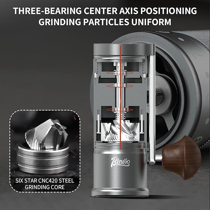 T-mark Manual Coffee Grinder, Portable Adjustable Coffee Grinder 6-Cell CNC Stainless Steel Conical Burr Grinder for Travel Home -