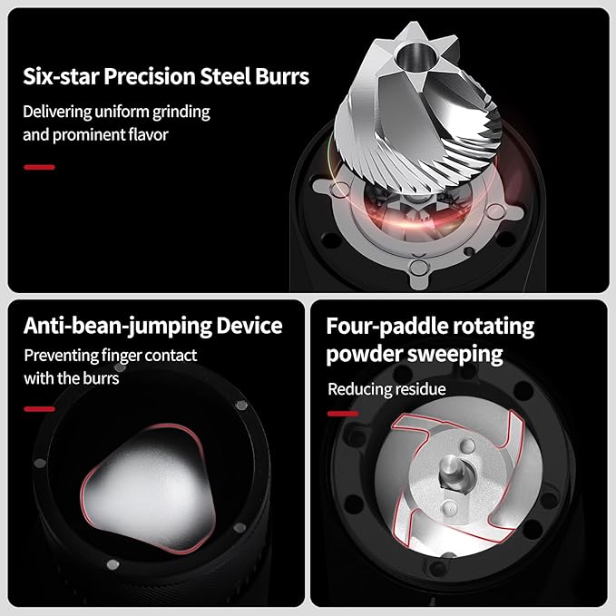 Espresso Grinder for Home Use - Stepless Adjustment Electric Burr Coffee Grinders, One-Touch Coffee Bean Grinder with 38mm 6-Star Conical Burr, Magnetic Dosing Cup and Air-Blowing -