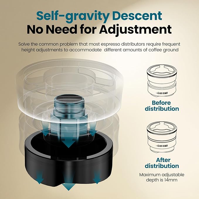 MHW-3BOMBER 58.5mm Espresso Coffee Distributor, Gravity Espresso Distribution Tool with Adaptive Height for Barista, Coffee Leveler Tools for 58mm Machine Portafilter, Astra Collection, T7021-OS -