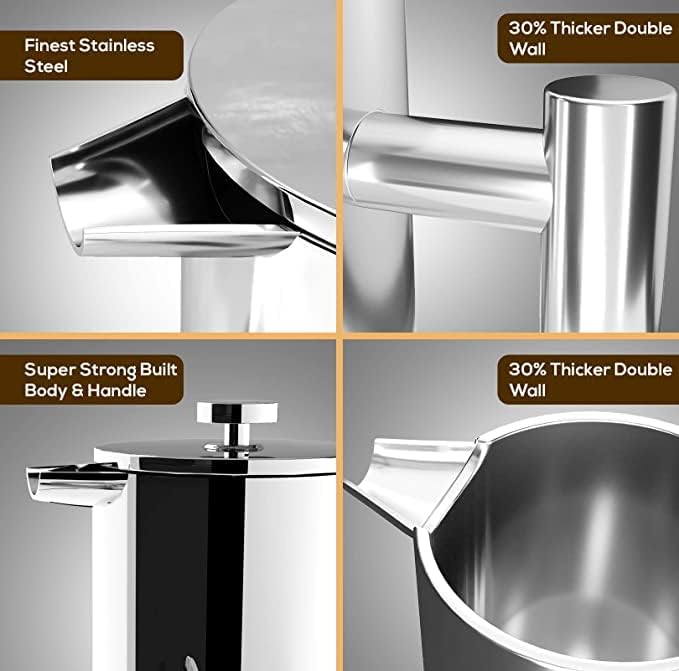 Utopia Kitchen French Press Coffee Maker, Double Wall Insulated Stainless Steel Coffee Press with 4-Level Filtration system, Includes 2 Extra Filters, Rust-Free, Dishwasher Safe (Silver, 17 Ounce) -