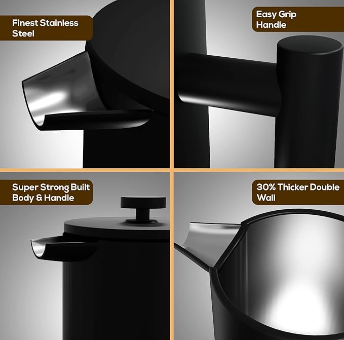 Utopia Kitchen French Press Coffee Maker, Double Wall Insulated Stainless Steel Coffee Press with 4-Level Filtration system, Includes 2 Extra Filters, Rust-Free, Dishwasher Safe (Black, 17 Ounce) -
