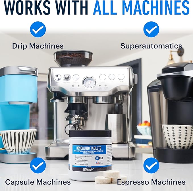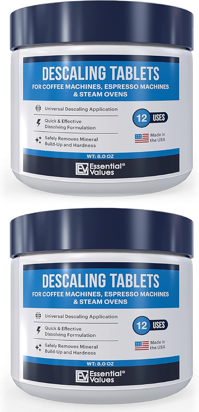 Essential Values Descaling Tablets (24 Count/Up To 24 Uses) For Jura, Miele, Bosch, Tassimo Espresso Machines and Miele Steam Ovens