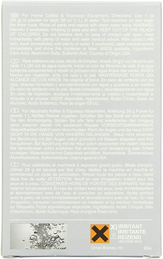 Urnex Dezcal Home Activated Descaler For Home Coffee & Espresso Equipt 2 boxes, each containing 4 (1 oz Packets) -