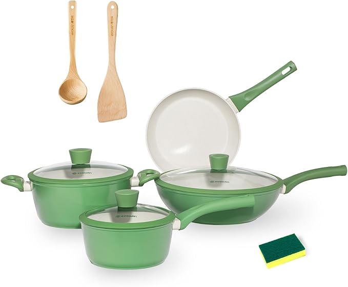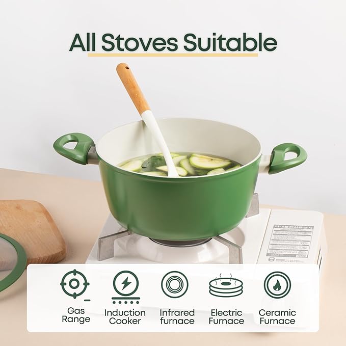 10Pcs Pots and Pans Set,nonstick Cookware Set Kitchen Cooking Set,Non-toxic Healthy Ceramic Induction Cookware Sets with firm heat-resistant handle(PFOA Free) -