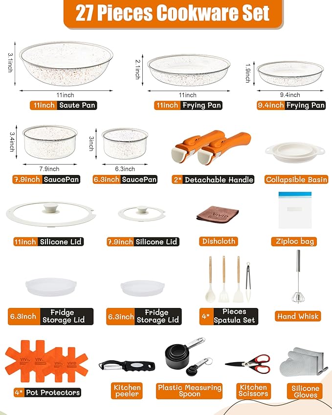 GiPP 11Pcs Pots and Pans Set Non Stick, Cookware Sets Nonstick Detachable Handle, Induction Kitchen Set Removable Handle, RV Cookware set, Oven Safe -