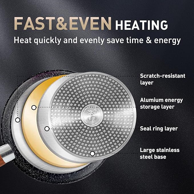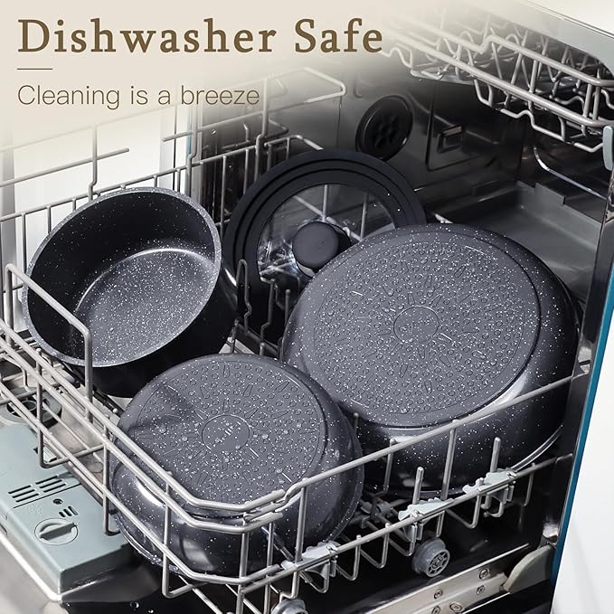 MAISON ARTS Pots and Pans Set Non Stick, 12 Piece Black Granite Kitchen Cookware Induction Compatible, Pot and Pan Sets for Cooking Nonstick
