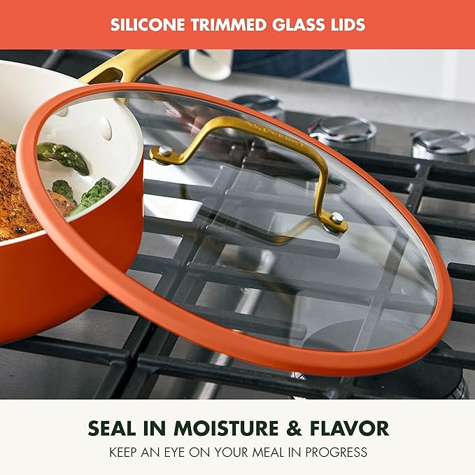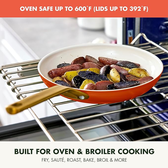 GreenPan Nonstick Reserve Pro 10 Piece Cookware Set, NSF Certified Ceramic, Hard Anodized PFAS-Free Pots & Pans Set with Lids, Stainless Steel Handles, Oven & Dishwasher Safe, Harvest Orange -