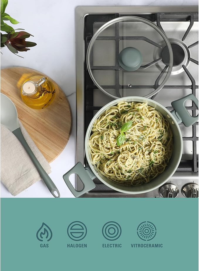 MAISON ARTS 17 Piece Pots and Pans Set Non Stick, Kitchen Cookware Sets with Nonstick Granite Stone Coating, Suitable for Induction Cooktops, Green -
