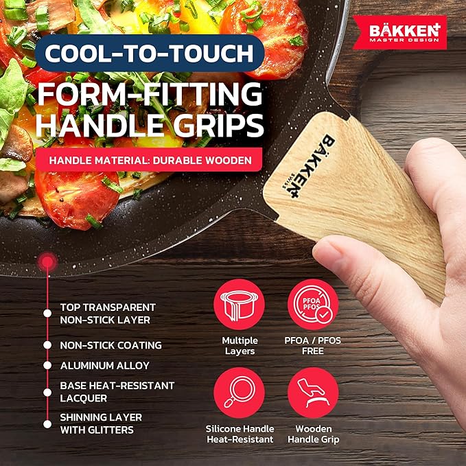 Bakken-Swiss 20-Piece Kitchen Cookware Set – Granite Non-Stick – Eco-Friendly – for All Stoves & Oven-Safe